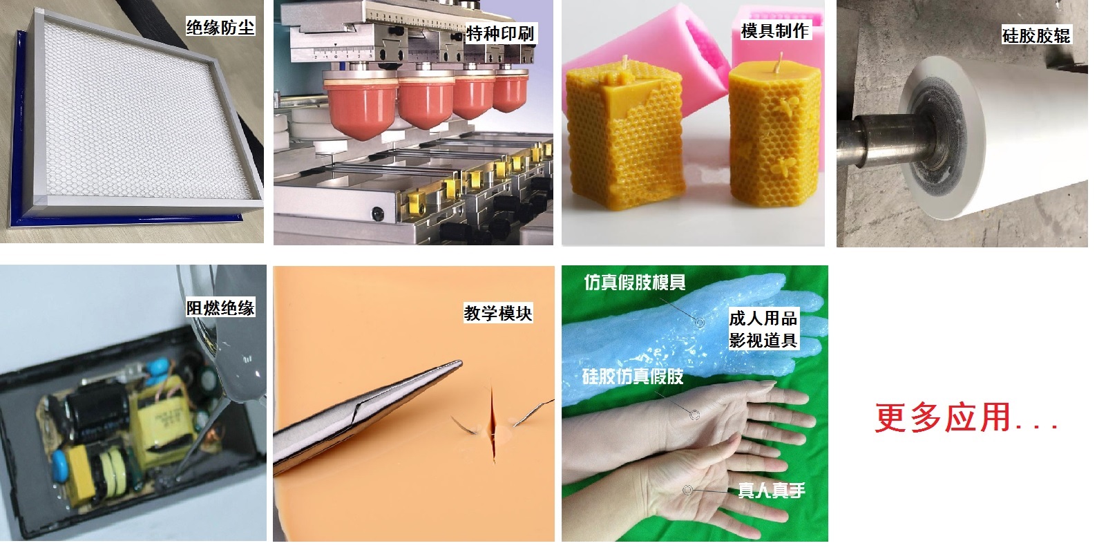 液體硅膠又叫液態(tài)硅膠,常應(yīng)用于制作硅膠制品、模具、移印膠頭、膠輥、灌封絕緣、成年人用具、硅膠假肢模型以及科研特殊領(lǐng)域。具有耐臭氧、耐酸堿腐蝕,因其良好的物理性能和可操作性,市場遍布面非常廣。