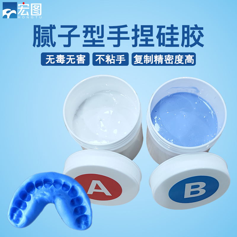 手捏硅膠是雙組份室溫固化硅橡膠,固化前A,B組分為膩子型(軟泥狀),混合后可快速固化,固化后具有一定的彈性和硬度,并且具有極低的成型收縮性和存儲穩(wěn)定性。利用其方便的可塑性可便捷地復(fù)制出所要空間的形態(tài),得到物體一定空間的仿制體,進而可以測量所需部位的尺寸。對于那些難以用工具直接測量的所需部位,利用該材料能方便的完成測量。